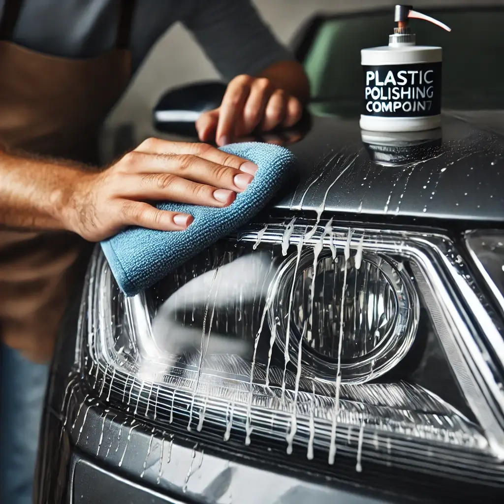 Efter våtslipningen är det dags att applicera polermedlet. Det här steget hjälper till att återställa klarheten i plasten och ge strålkastarna en glansig yta.