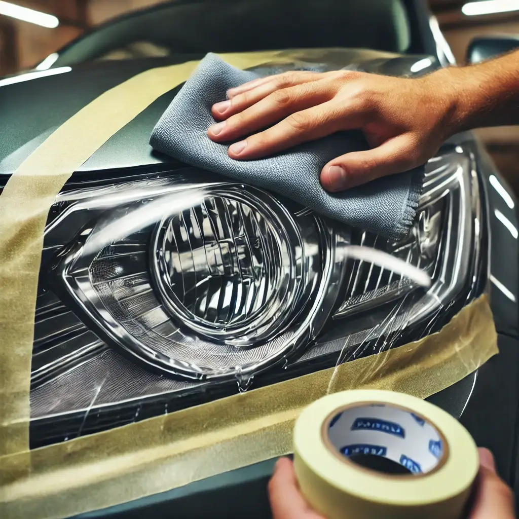 För att undvika att skada bilens lack runt strålkastarna är det viktigt att skydda dessa områden med maskeringstejp.