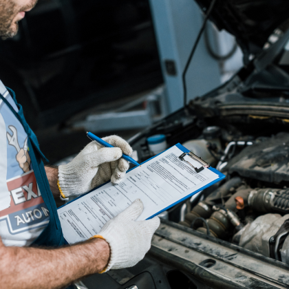 Vi delar in besiktningen i tre delar. Utvändig kontroll, invändig kontroll och provkörning.